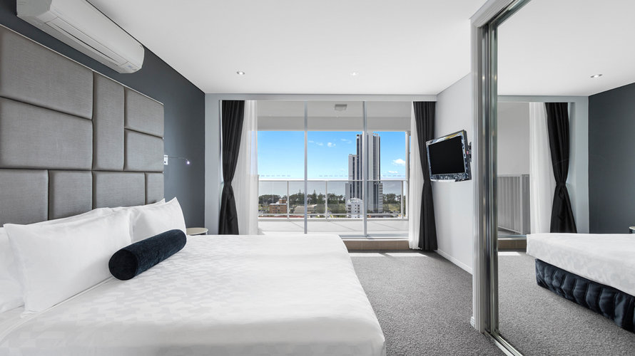 The 3 Bedroom Modern Suite has been designed with space and comfort in mind, perfectly suited to families, friends or colleagues requiring one suite to share. Featuring 2 bathrooms, fully equipped gourmet kitchen and comfortable furnishings.