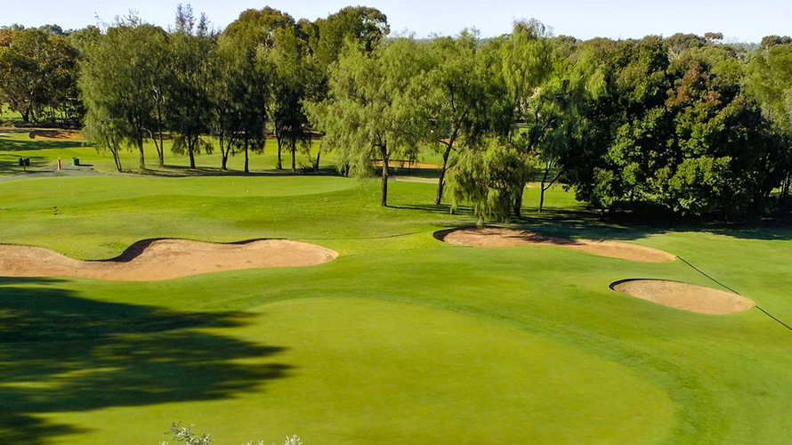 Ideal for your next group or individual golfing holiday the award winning golf course at Murray Downs is a previous winner of Victorian PGA course of the year and consistently voted in the top resort courses around Australia. Murray Downs Golf & Country Club has all the facilities to match its reputation. The Par 72 course is a striking contrast to the Mallee plains that surround it, experience the pleasure of playing away from the city crowds with river gums in the background. The course has some great signature holes including the 5th which is pictured to your left, with a long water carry over to the green. Making it a challenging task for those that choose to risk it and hit straight for the hole. The course does provide some relief on other holes including the other Par 3 11th and 15th. Murray Downs Golf & Country Club is playable to all handicaps, rewarding the great shots and penalising the ones we wish we’d never hit.