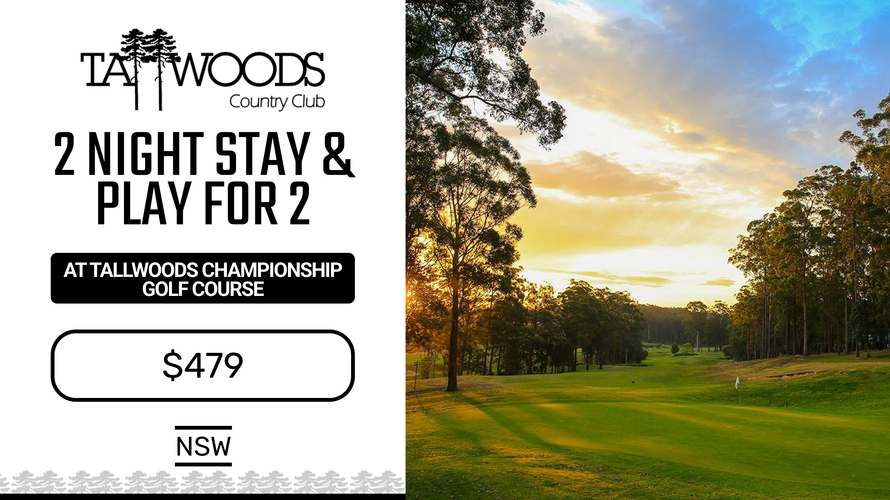 Stay at One of NSW's Hidden Gems! Two Night Stay & Play for Two at Tallwoods Golf Course. Includes 2 days of Golf with Shared Motorised Carts. Grab this deal for just $479!