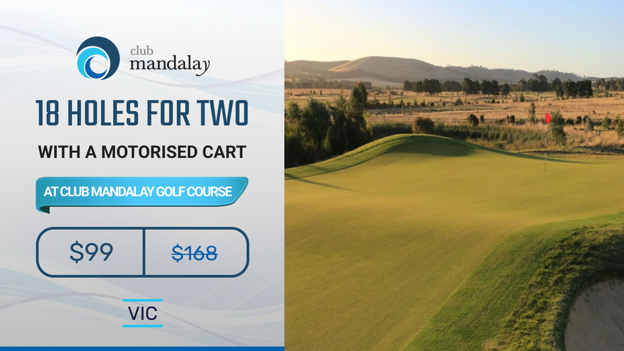 Play one of Melbourne's Top Courses! 18 holes for TWO in a Shared Motorised Cart at the beautiful Peter Thomson designed Club Mandalay. Normally $168, Today just $99!